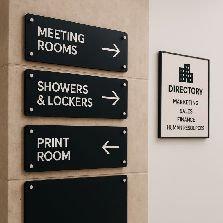 Orientación clara y refuerzo de marca en cada punto de contacto. Diseñamos sistemas de señalización que combinan funcionalidad wayfinding con expresión de identidad corporativa para crear experiencias coherentes y profesionales. Disponibles en acrílico, PVC, aluminio compuesto y otros materiales especializados. Opciones retroiluminadas, en relieve, con acabados metálicos o tratamientos especiales para entornos específicos. Aplicaciones ideales: Identificación corporativa, señalización direccional interior/exterior, normativa de seguridad y sectorización de espacios.